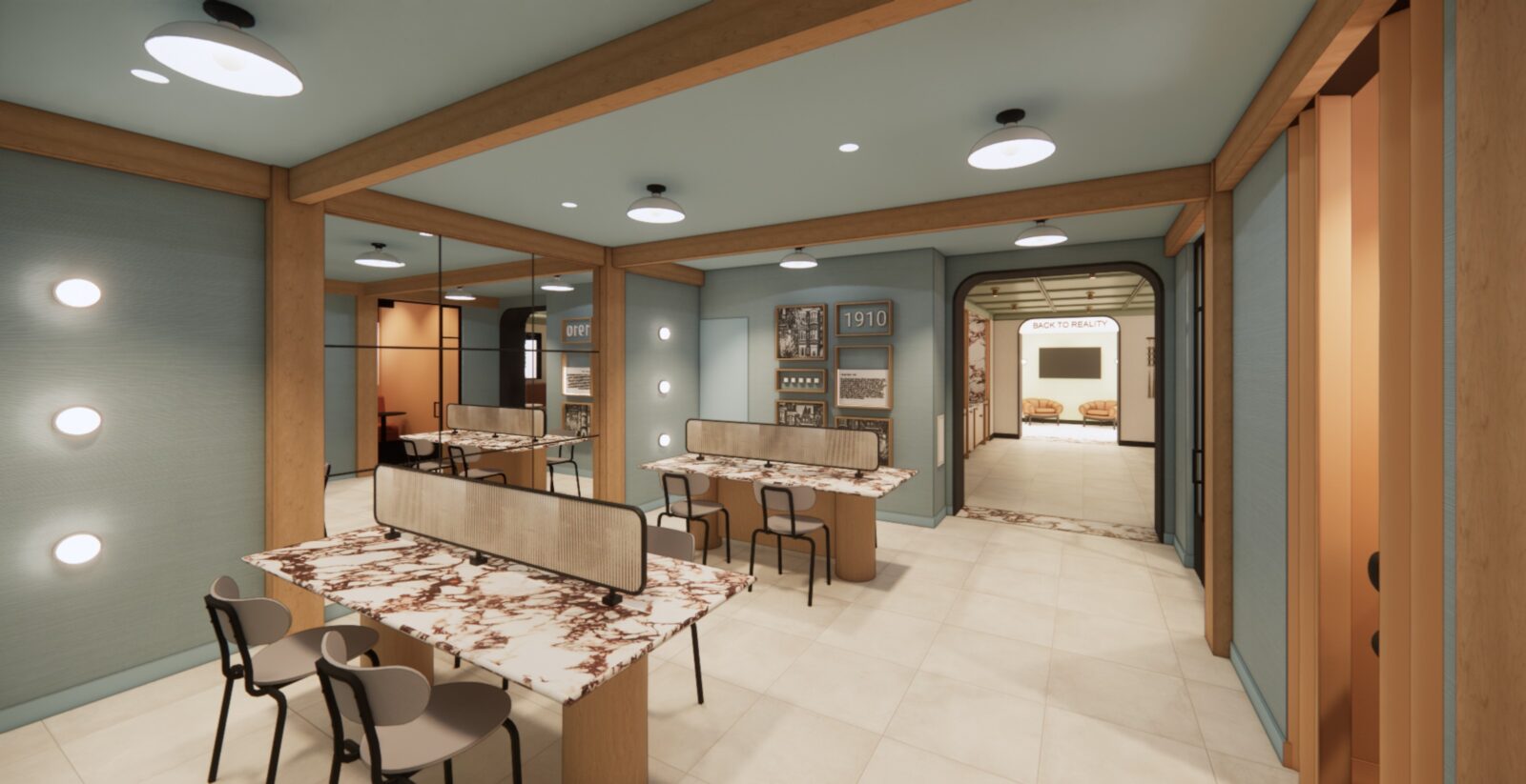 CosciaMoos was tasked with updating and expanding the property—adding new residential units and amenity spaces while navigating the complexities of exterior historic approvals and phased construction to maintain residents in place. The reimagined interior spaces transform the buildings into a contemporary sanctuary, balancing modern minimalism with timeless luxury. Warm whites, moody olives and soft blues set a refined backdrop, accented by antique brass and vibrant furnishings. Rich materials such as Calacatta marble, textured gold wallcoverings, and glowing globe sconces elevate the experience, while clean and open layouts provide a sense of cohesion. This renovation offers residents a modern living environment within a preserved historic setting.